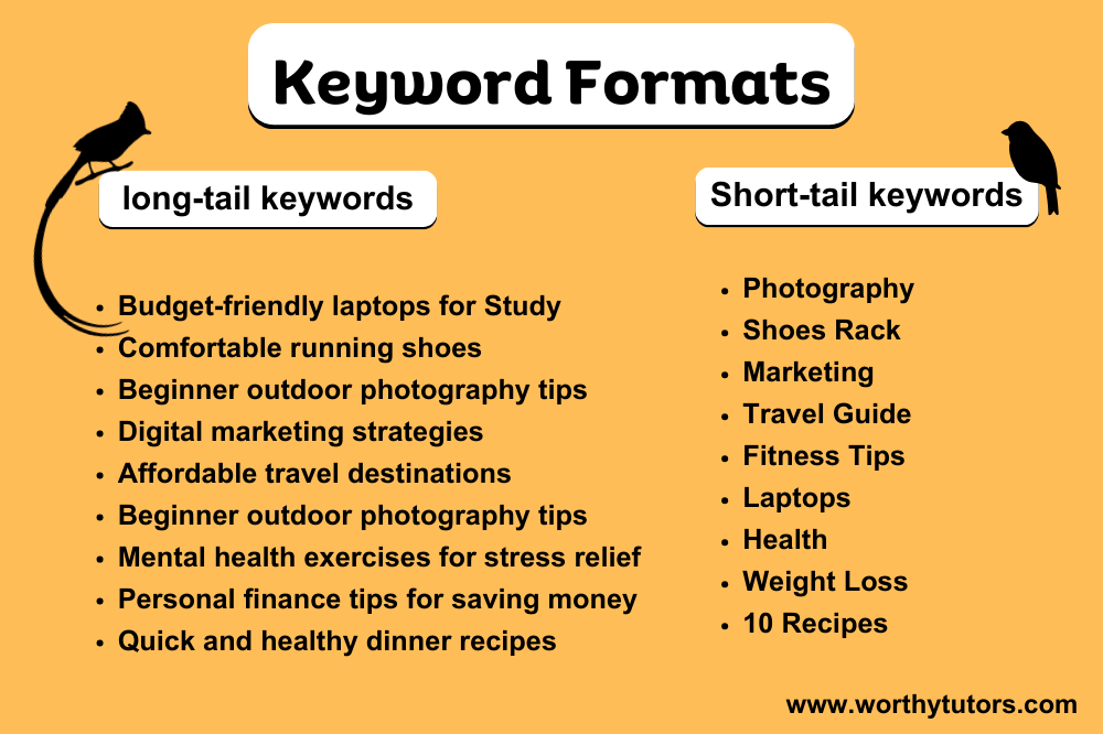 We divide keywords into two formats: Short-tail keywords and long-tail keywords.